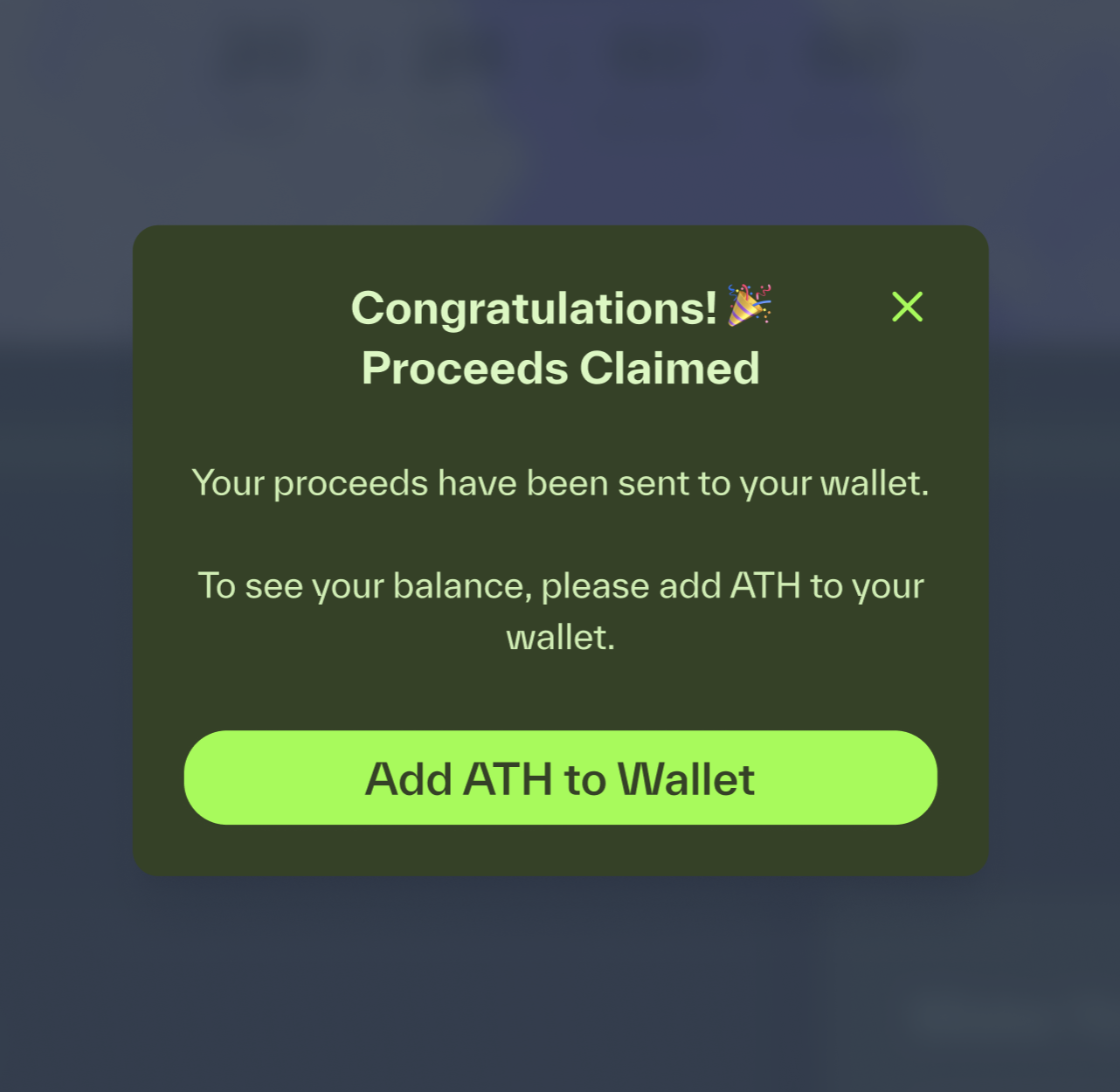 After you claim proceeds you will need to add tokens to your wallet.
