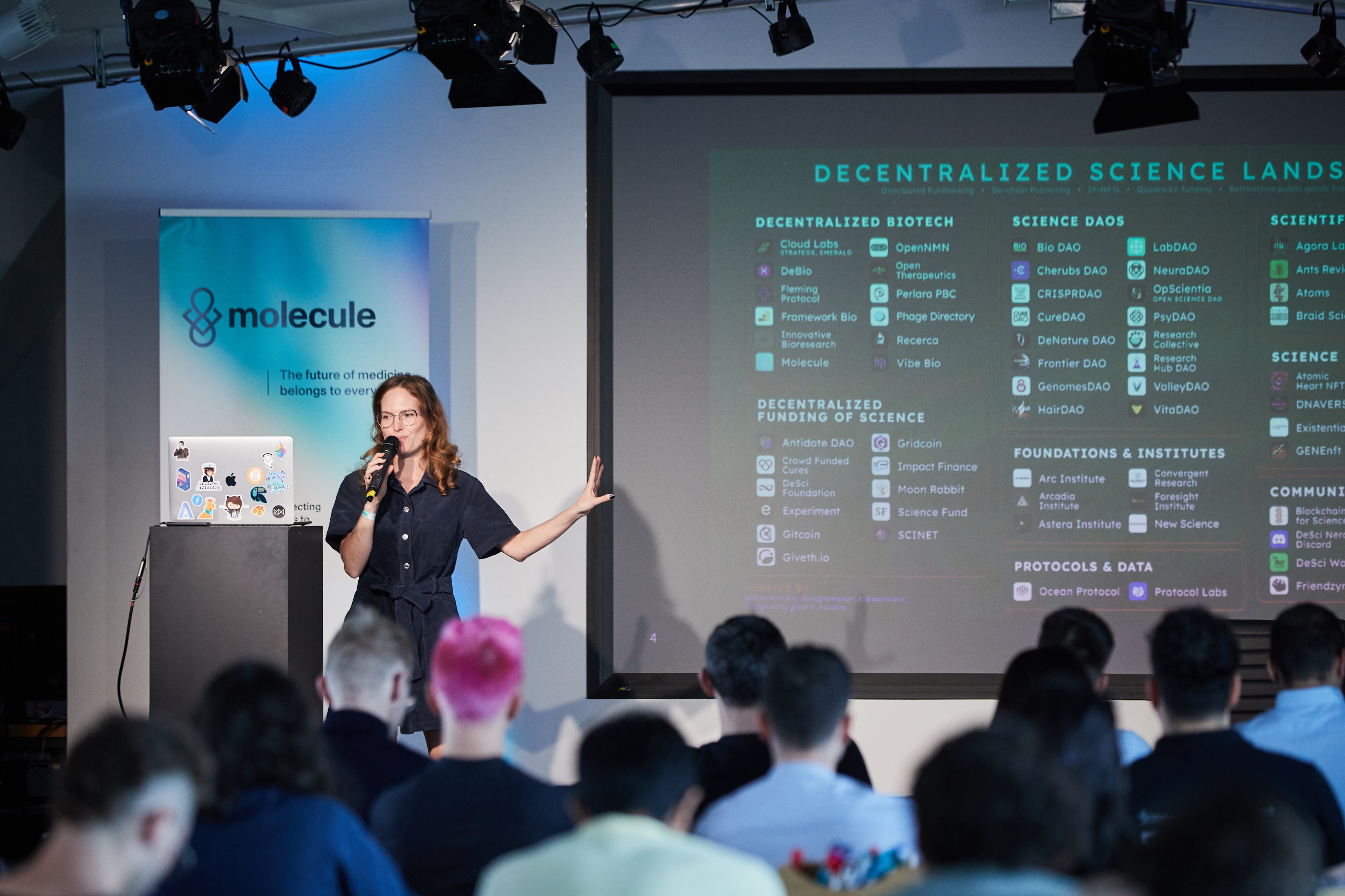 The event kicked off with a welcome by Paul Kohlhaas, CEO and co-founder of Molecule to give a brief recap in the current Decentralized Science Ecosystem and the fresh official announcement of closing Molecule’s 13 million seed round. This set the stage to explore the potential and future of decentralized science and biotech.