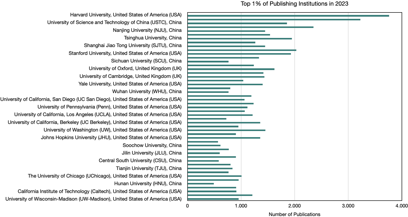 - Approximately 40% of academic publications are produced by the top 1% of institutions (Figure 1)..