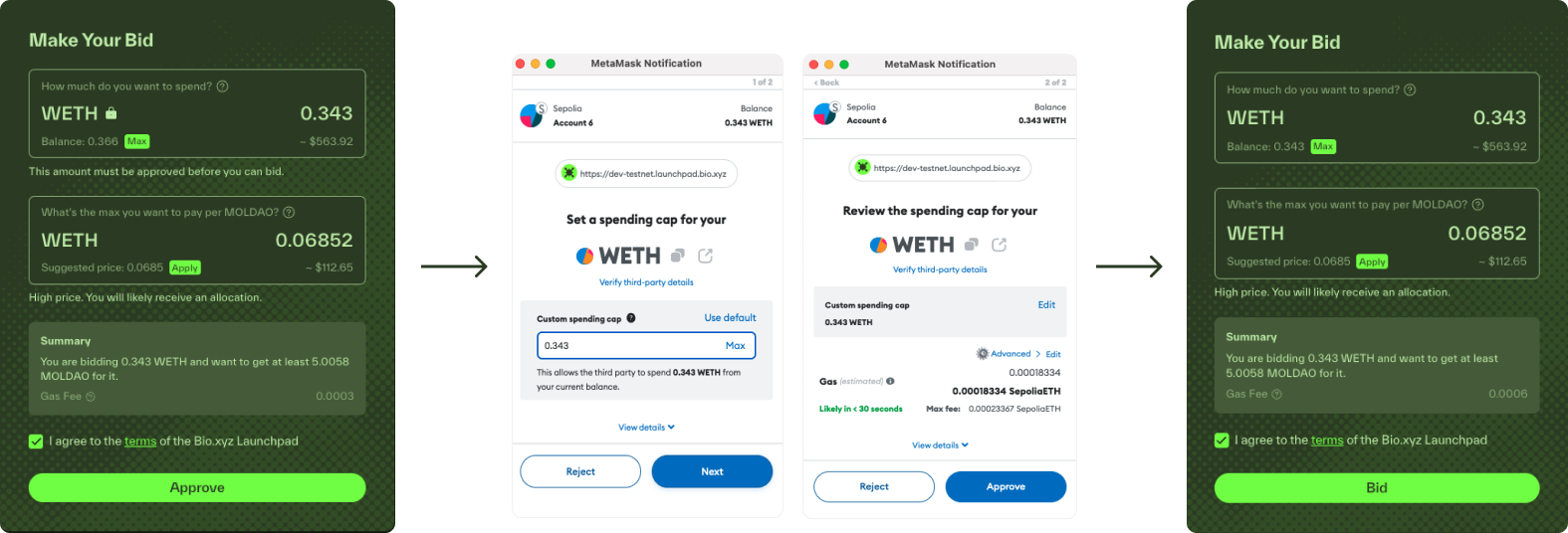 4. Approve Bid Tokens