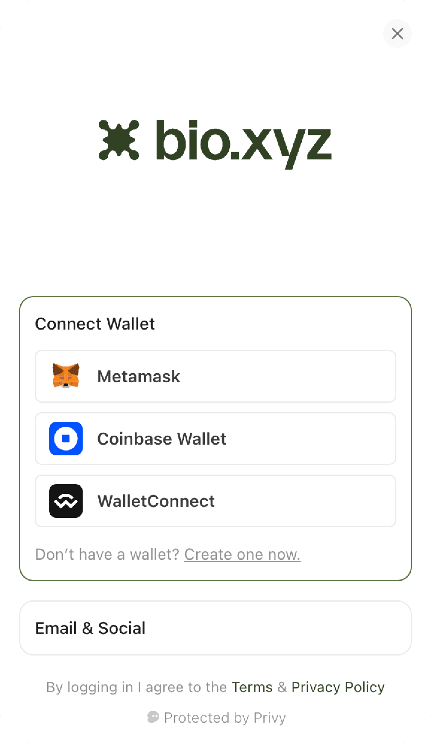 If you already have a wallet, you can select it from the list of available options. If you don’t have a wallet, you can log in with email or a social account and a wallet will be created for you.