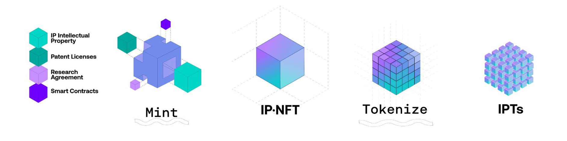 - Intellectual Property Tokens (IPTs): IPTs are fungible tokens that distribute the IP rights associated with a particular IP-NFT, decentralizing its scientific process by enabling globally distributed governance of it and transforming the way scientists engage with their online communities.