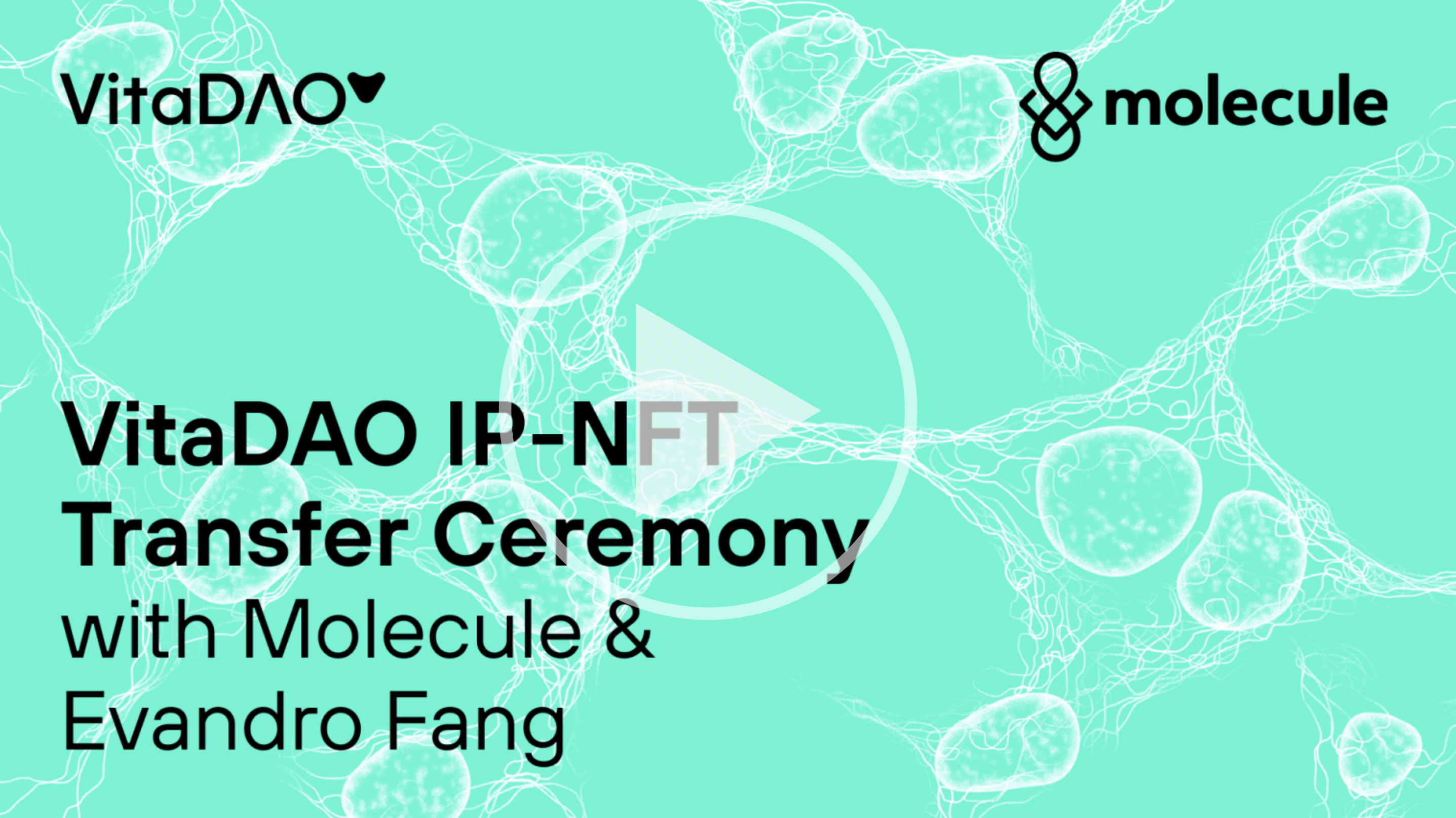 - With Molecule Discovery, researchers can submit and curate their research projects in order to attract industry-specific funders (i.e Evandro Fang’s submission, which attracted attention and funding from VitaDAO). In turn, funding is provided through Molecule’s IP-NFT framework, where intellectual property is attached to a non-fungible token and allows researchers to fundraise commercially (i.e, the funding of this project).